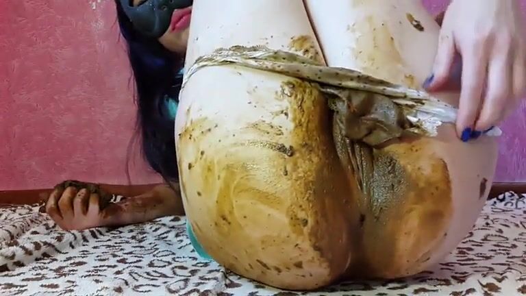 Young girl smearing shit on her naked body
