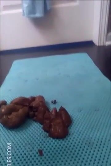 Woman squats over a pile of fresh shit on a mat