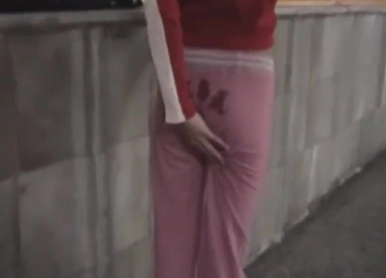 She's dancing and pooping in tight black pants
