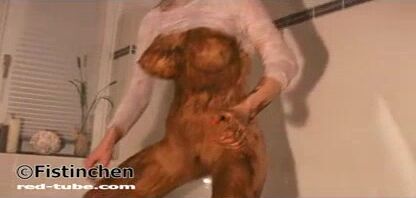 Busty milf gets covered heavily in the shit