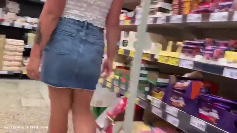 Sexy blonde poops in the store
