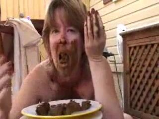 Mature lady eating shit while pussy rubbing