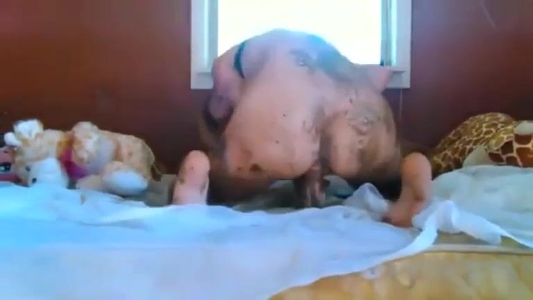 Sexy little piglet enjoying scat blowjob
