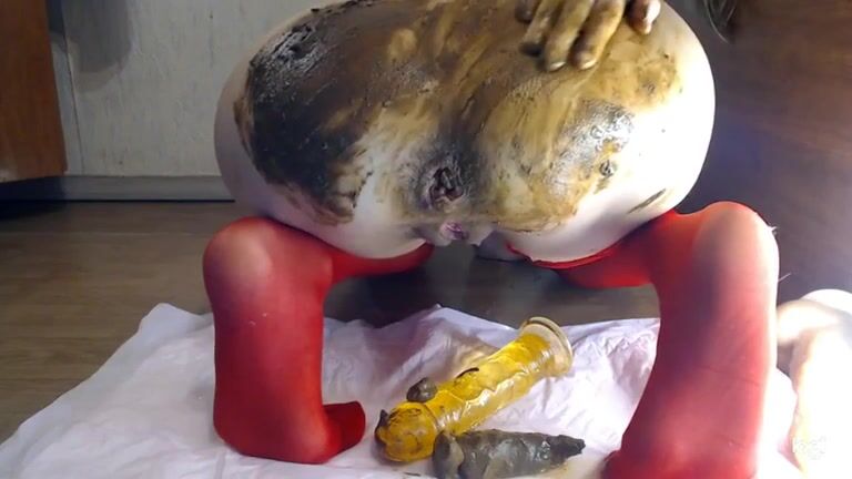 lovely filthy scat porn shitting and rubbing that shit on her c