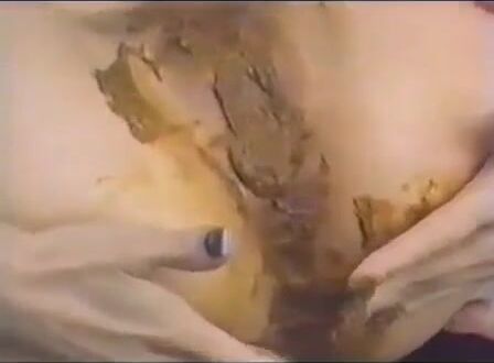 Nasty Retro babe rubbing shit