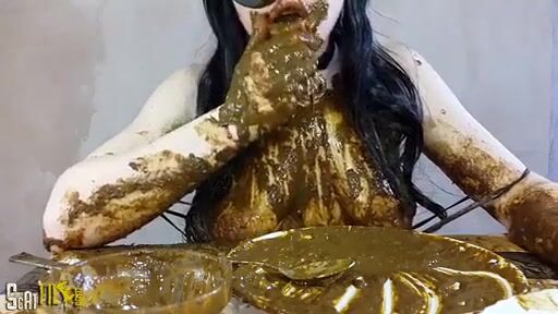 Asian girl eating her own scat