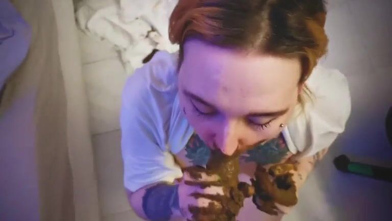 Fantastic babe eating messy shit
