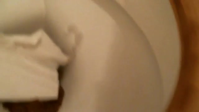 Close up view of a swirly poop landing on the toilet