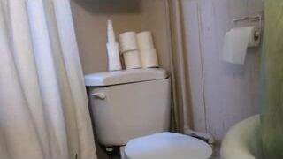 Mature brunette pooping