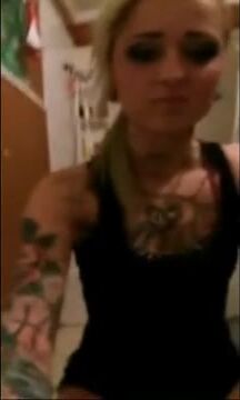 Tattooed blonde babe teasing and fingering