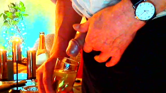 Pissing in champagne glass