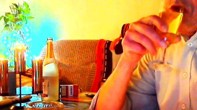 Drunk mature man pissing in champagne glass