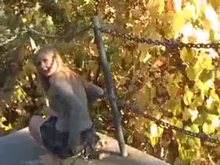 This blonde girl poops in the roadside when it was clear and no people passes by.