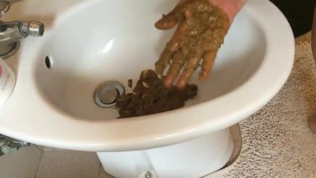 Smearing fresh shit on his drunk wife