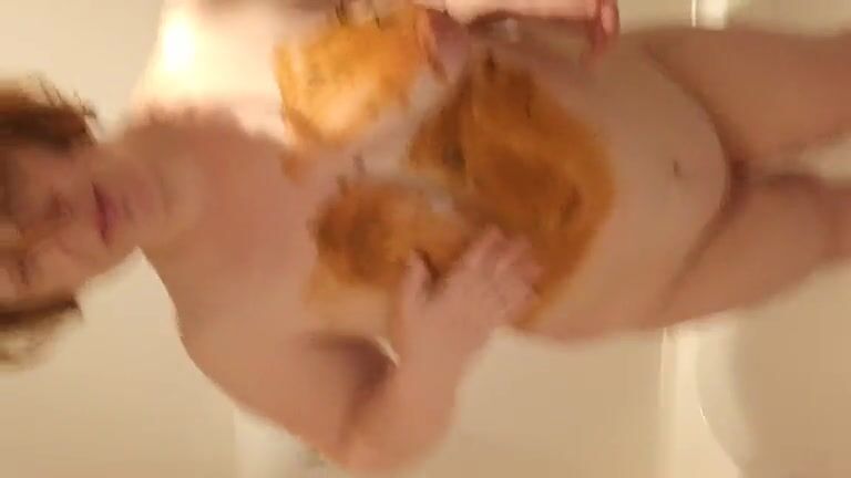 Chubby milf masturbating with fresh poop
