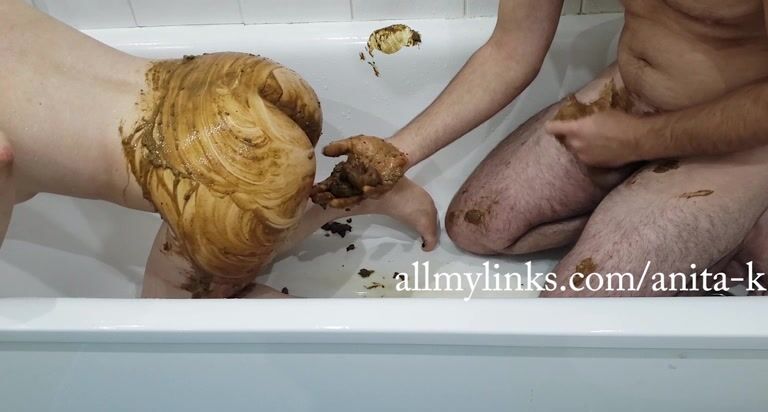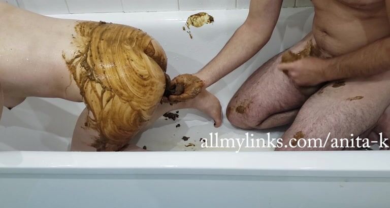 Rubbing shit as lotion on her body