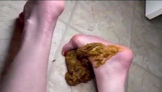 Pooping on her own feet