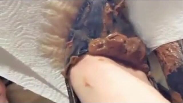 Chubby babe shitting on bed