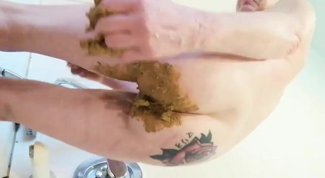 Smearing shit on her boobs and face
