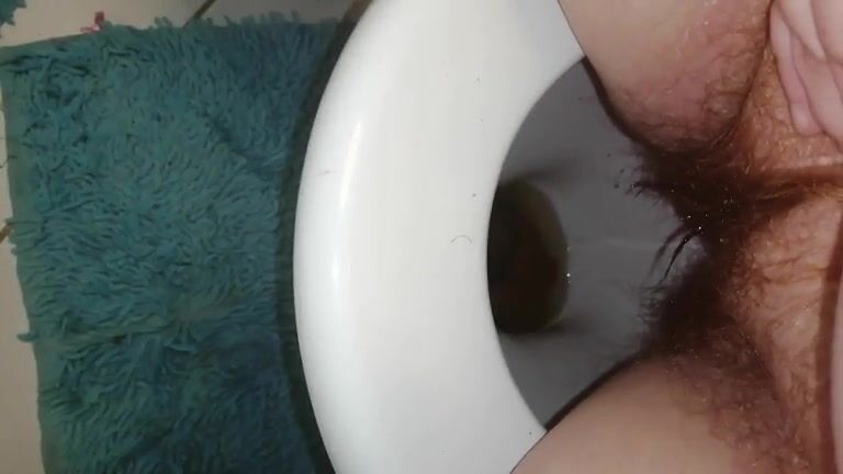 Teen with hairy ass is shitting