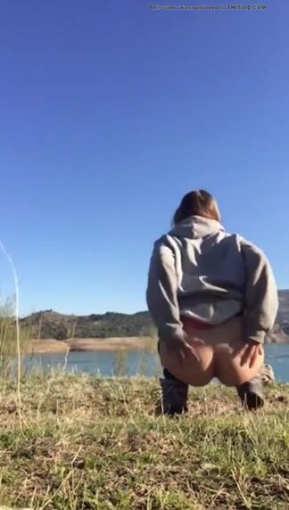 Lovely amateur girlfriend showing her pooping ass on the hill