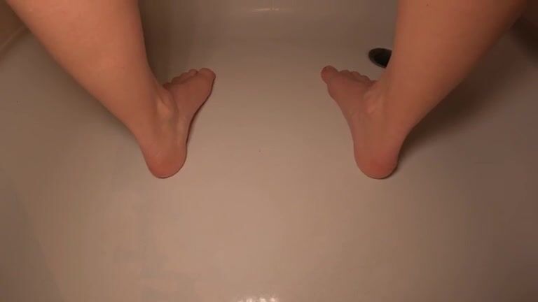 Teen girl shitting a yellow turd between her heels