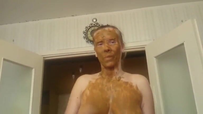 Nasty big tits milf smearing shit on her body