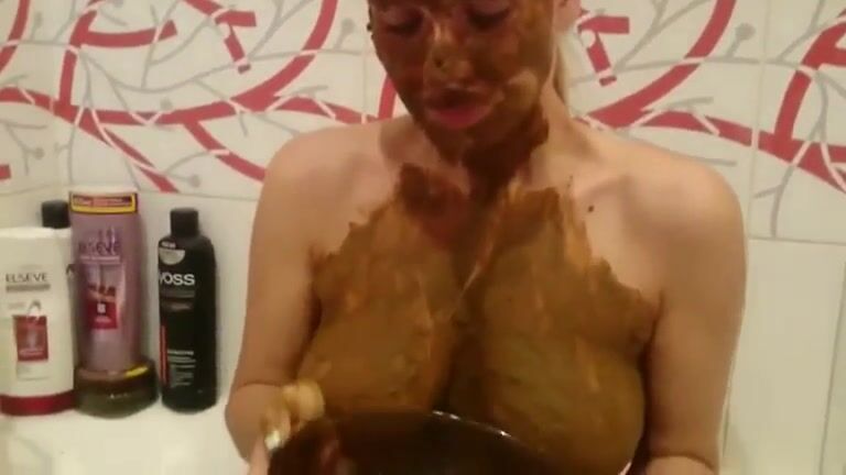 Shit covered hot babe enjoying solo teasing