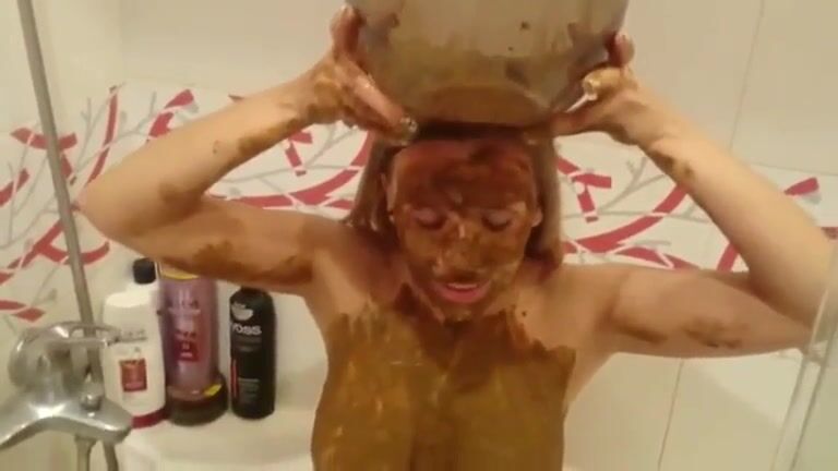 Nasty lady gets covered in shit