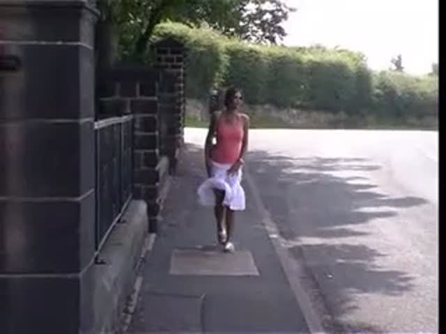 A Pissing Whore takes a walk in the park. While this whore takes a walk in the park, she decides to piss right there not caring who is going to see her.
