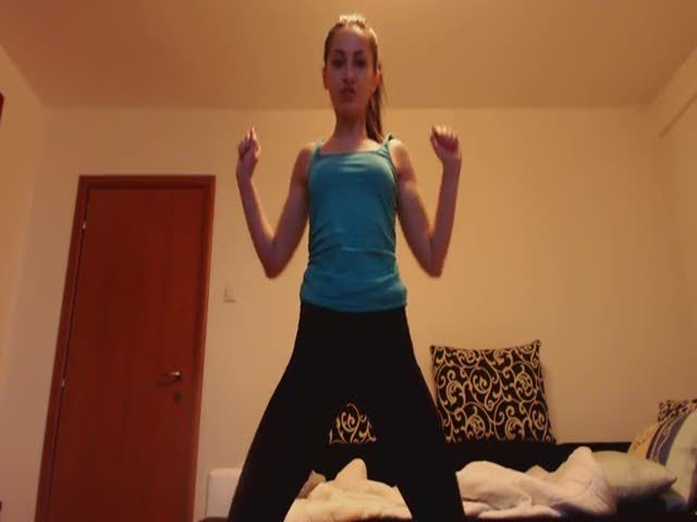 Hot girl is dancing in her room and then shits on the floor making a turd mess