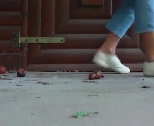 Nasty German girl is taking revenge on someone by shitting on their house porce. She leaves fast after that…
