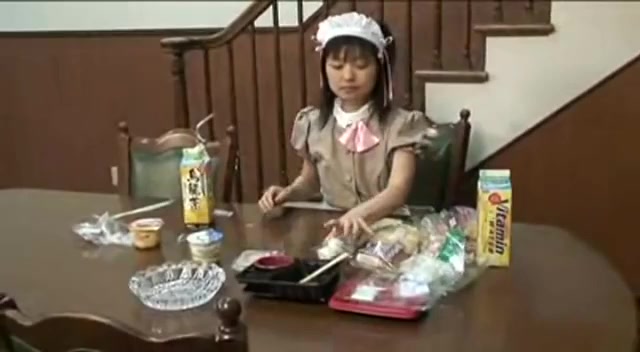 Sexy Asian girl eating diferent kind of foods like soup, sweets, some candys…Oh I forgot to mention, she's wearing a school girl outfit. After that she starts puking on the table and starts smearing all that puke on her body.