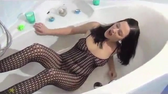 Long haired milf dressed in a mesh plays with herself in a bathroom. She lays down in the bath thub and lift her legs in the air. She takes a shit and lets in drip all over her and onto her face.