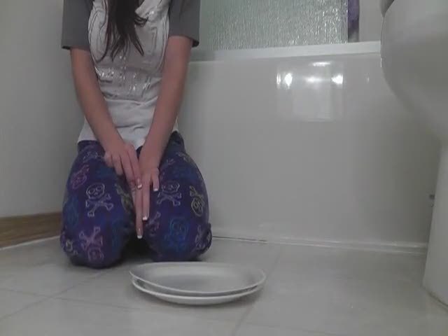 This girl has such a perfect ass and asshole. She starts shitting on a plate. But look at her shit…it's so creamy and delicious…to bad that she doesn’t smear it on her body or something.