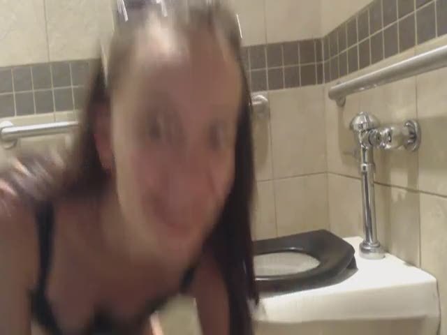 Brunette girl taking a shit in a toilet. The girl is hot and sexy, I like about her that she's so chill and she doesn't give a fuck about that guy that's filming her.