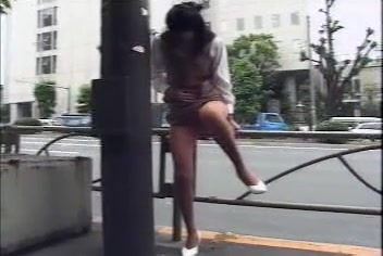 Japanese brunette girl trying to take a shit in a toilet. She can't…I don't fucking know why…but she can't shit in the toilet. So she goes in the street and poops on the ground …while cars are passing by…