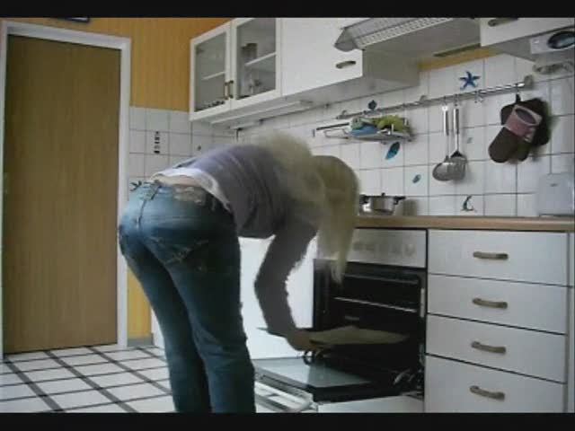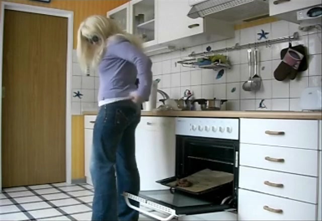 Mature blonde lady wants to bake a special pie. So she shits in the oven and starts baking a shitty pie…