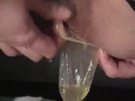 Sexy girl wearing black hot lengerie is sitting on a couch. She pees and poops in a condom. After that..she starts masturbating with that condom. She inserts it deep in her pussy..nice.
