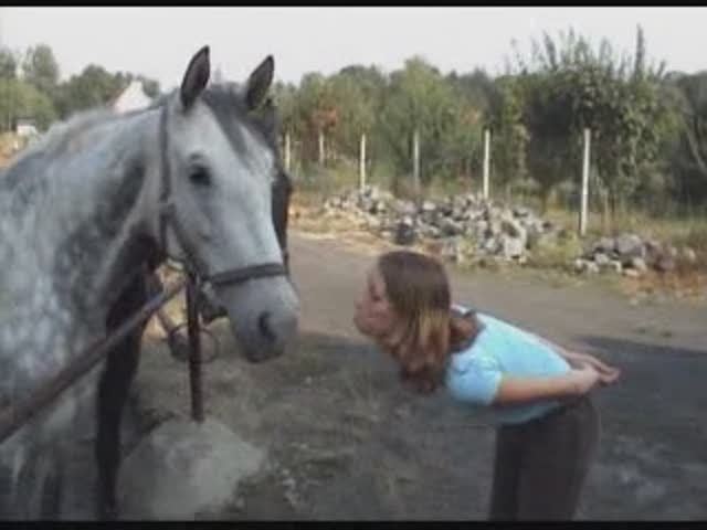 This brunette girl went to a farm to play with the animals but she really needs to take pee and poop so she stops near a wall and poops and pees over it. No one will find out…