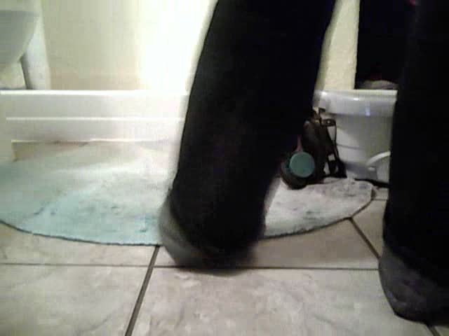 Fat girl wearing large clothes went to the bathroom to poop. But she's not using the toilet like normal people. She poops a hard poop on a black plate. Maybe she wants to eat it later…who knows…