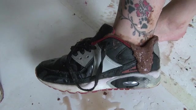 Jasmin pooping on her sneakers