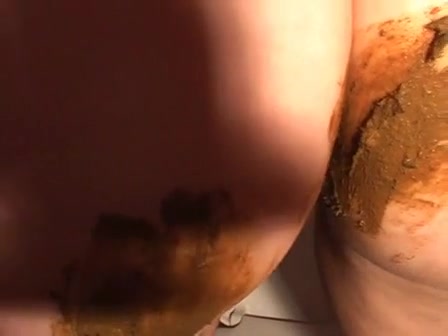 Girl with a sexy body is masturbating gently and slowly. She takes a shit on her hands and she smears that brown fresh shit on her pussy and entire body. She smears so much shit that we can't even see her skin…damn.