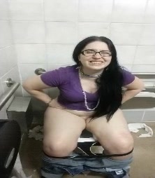 chubby woman films herself pooping on the toilet
