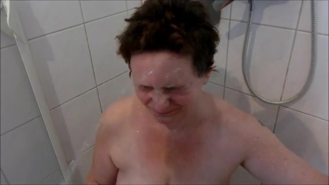 mature amateur gets a proper shower in the shower, sitting down she gets a hot warm piss right on her sexy body