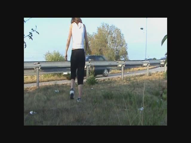 Hot gril went outdoor to take a shit. She stops in the middle of the road, in public as she takes a shit on the ground. Awesome.