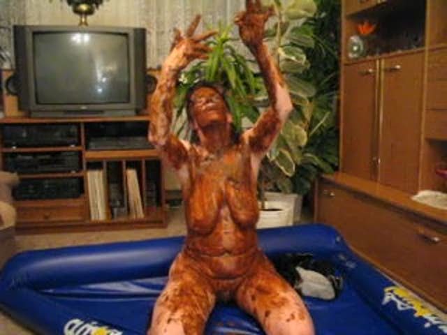 In this video we can see a old crazy old lady that's wearing a bathing suit. She starts eating fresh shit from the floor and from her bathroom…