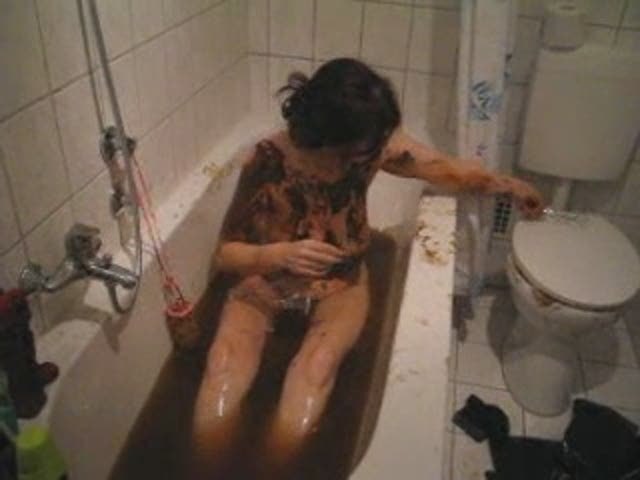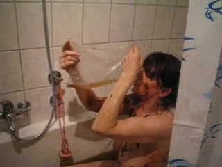 Wow…in this video we can see a middle aged brunette woman that's taking a scat bath. She mixed fresh shit with water. She semars shit on her face and she even drinks that shit at the end…