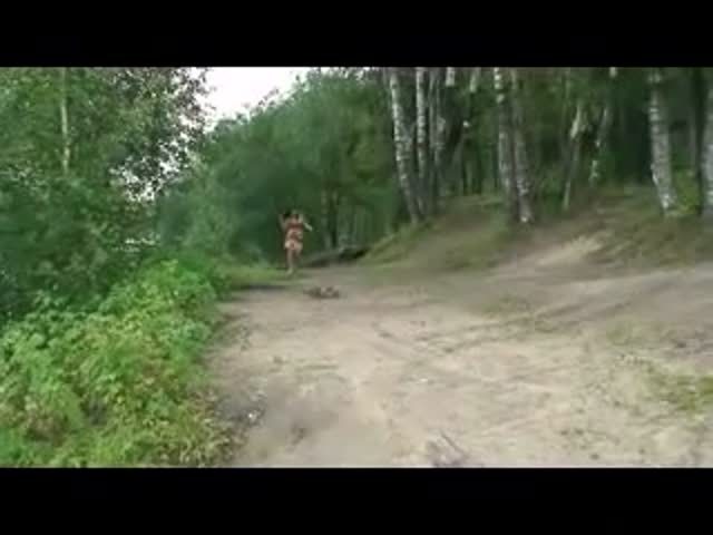 Busty girl pees on a pond