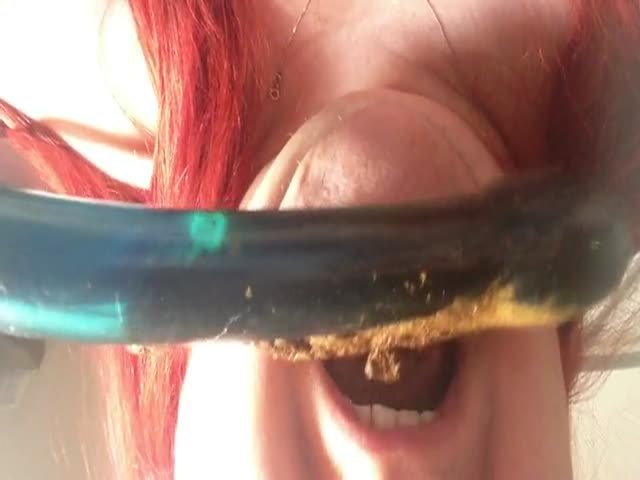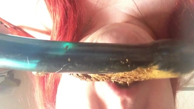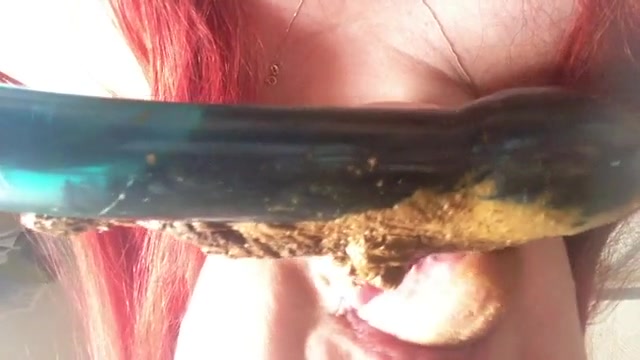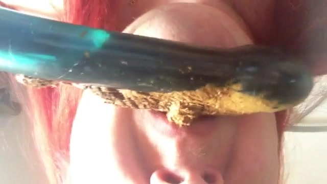 Hot redhead teen girl licks and eats shit from a big green cucumber. That proves to us that she's into scat like most of us…nice.